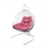 Подвесное кресло для двоих с ротангом белое, розовая подушка