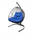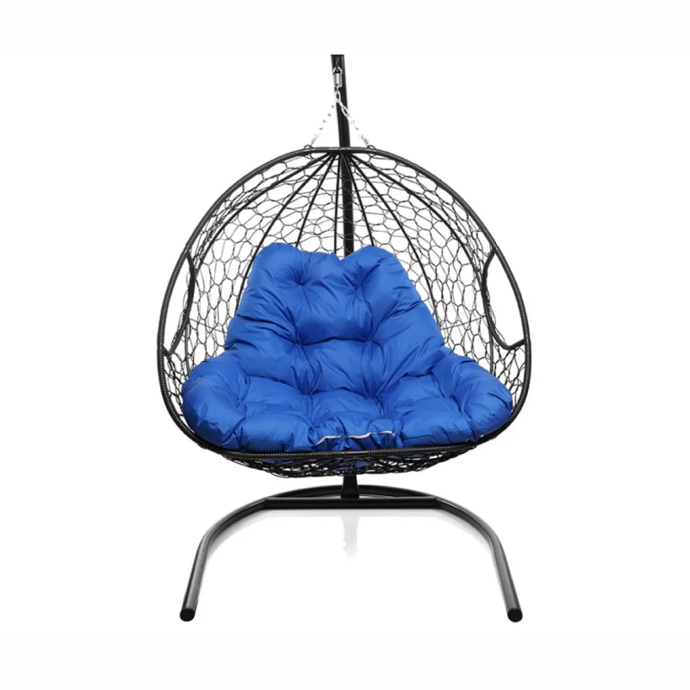 - Подвесное кресло для двоих с ротангом черное, синяя подушка