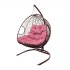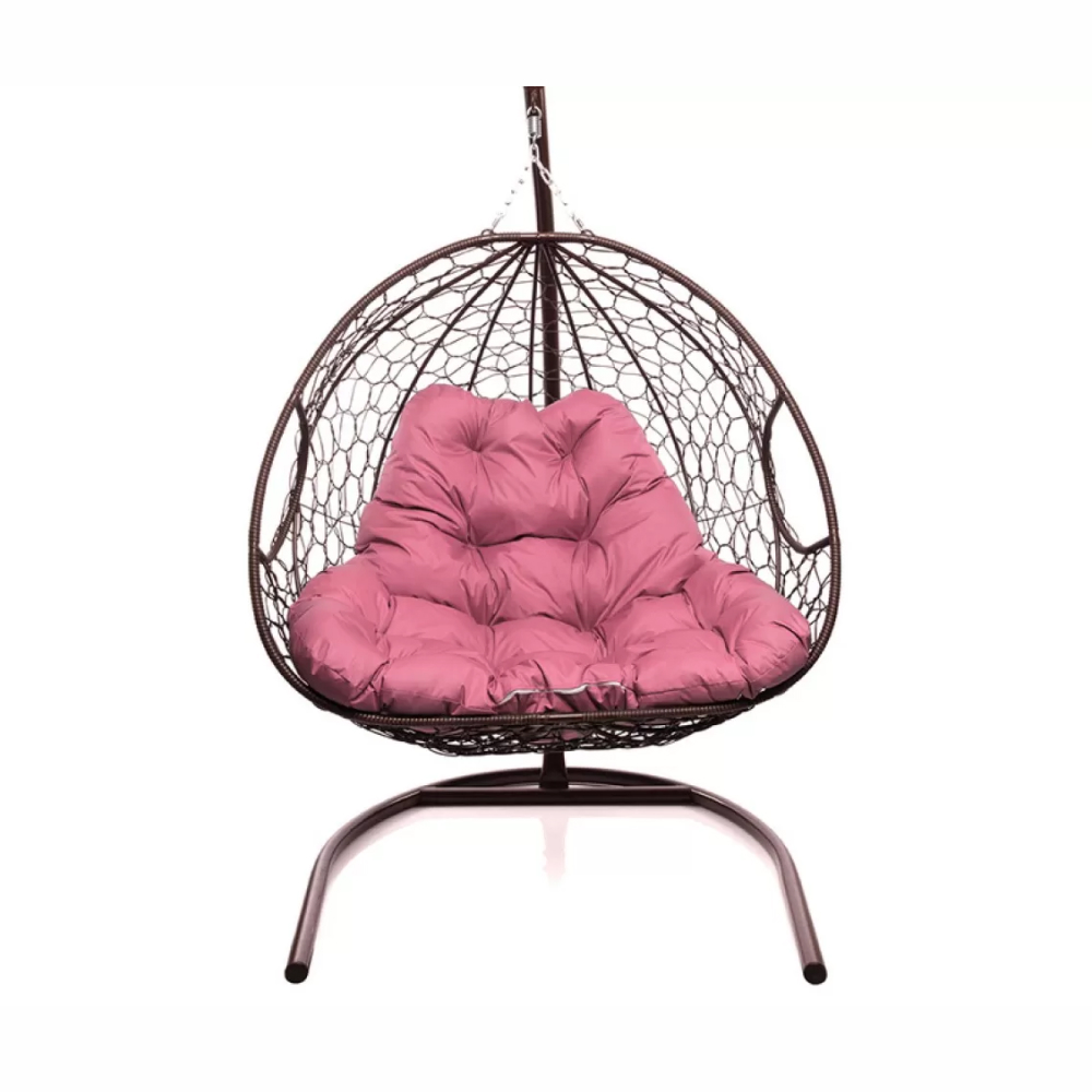 - Подвесное кресло для двоих с ротангом коричневое, розовая подушка