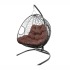 - Подвесное кресло для двоих с ротангом серое, коричневая подушка