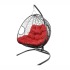 - Подвесное кресло для двоих с ротангом серое, красная подушка