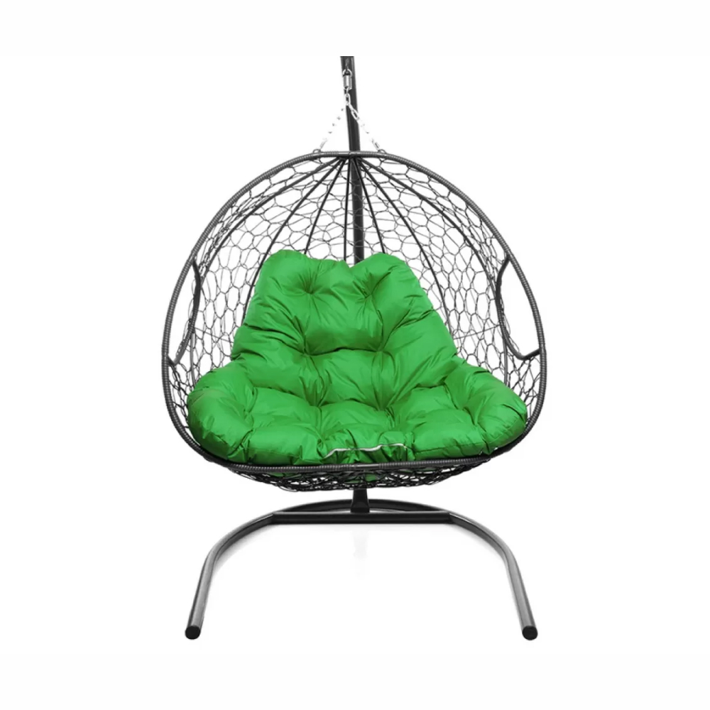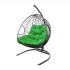 - Подвесное кресло для двоих с ротангом серое, зеленая подушка