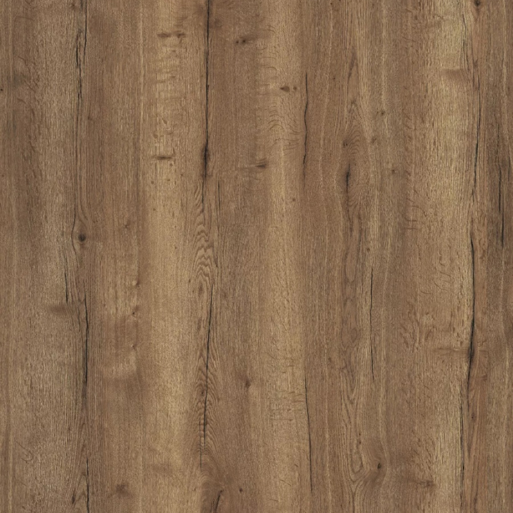 - Декор: Дуб Танго — декор выполнен в интенсивной, теплой коричневой гамме, часто с красноватым или рыжеватым оттенком. Он имитирует древесину дуба с заметными, контрастными темными и светлыми волокнами, что придает ему живость и динамику.