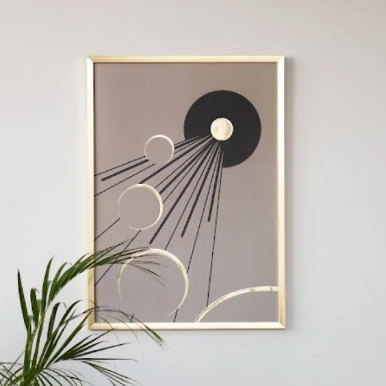 Постер из коллекции SHINE в черно-коричневой гамме с акцентными золотыми элементами, отсылающими к теме космоса.