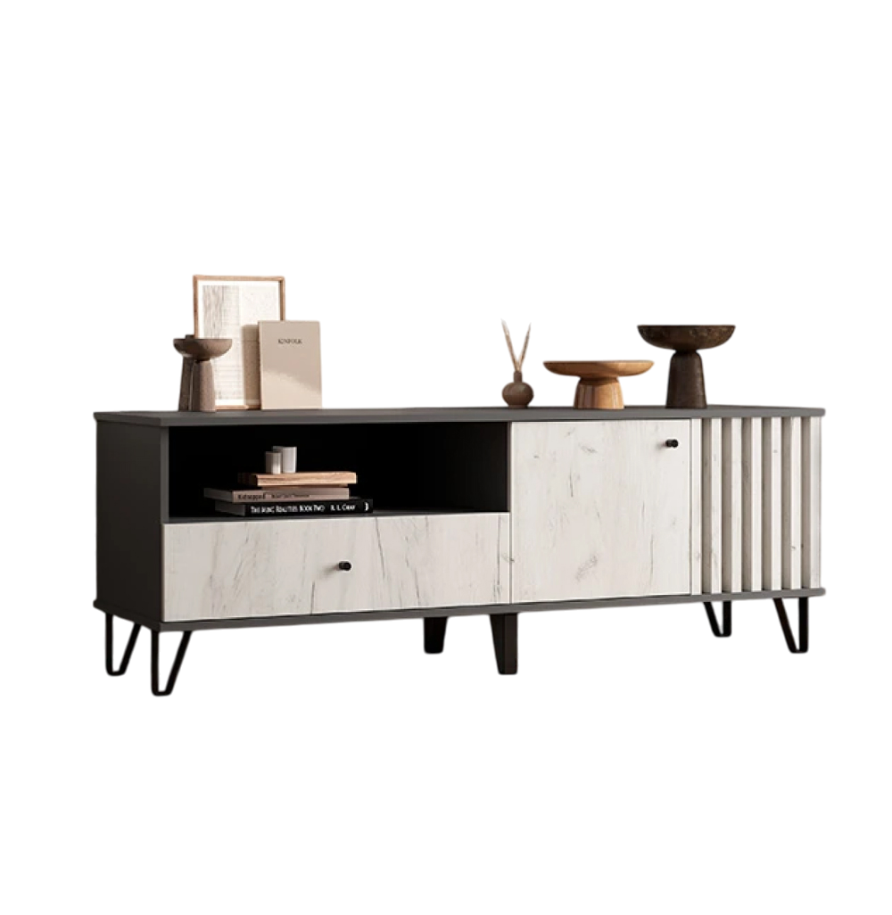 - Роджина Тумба ТВ 1500 мм, Дуб Крафт Белый / Графит