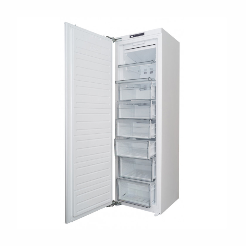 Встраиваемый морозильник, Габариты 1 компрессор; NO FROST (морозильная камера),Кол-во дверей: 1 LED подсветка; Электронное управление, Объём морозильной камеры(брутто/нетто): 221/197 л, Скорость замораживания: 15 кг/24 ч; автономное время сохранения t - 9 часов, Класс энергопотребления: А+; Климатический класс: BGT/N; Уровень шума: 41дБ; 1. Жёсткое крепление DOD - Door on Door; Объём (брутто/нетто): 221/197 л; Габариты (ШxГxВ), см: 54x54,5x177