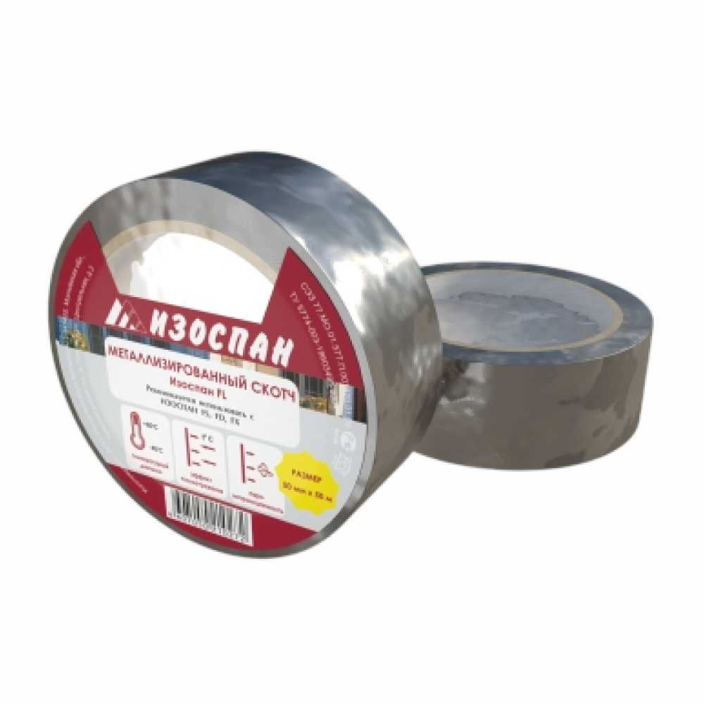 - Скотч для пароизоляции Изоспан FL, 50 мм х 50 м, лента металлизированная