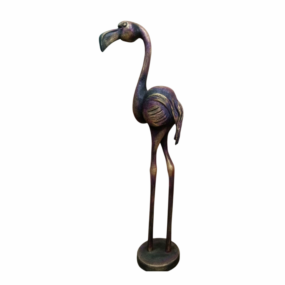 Грациозная скульптура фламинго ручной работы из натурального дерева, высота 160 см. Глубокий черный цвет в комбинации с золотыми акцентами и фиолетовыми бликами создает современный и эффектный образ. Эта скульптура — готовый арт-объект, который легко преобразит пустой угол и станет изюминкой вашего пространства.