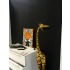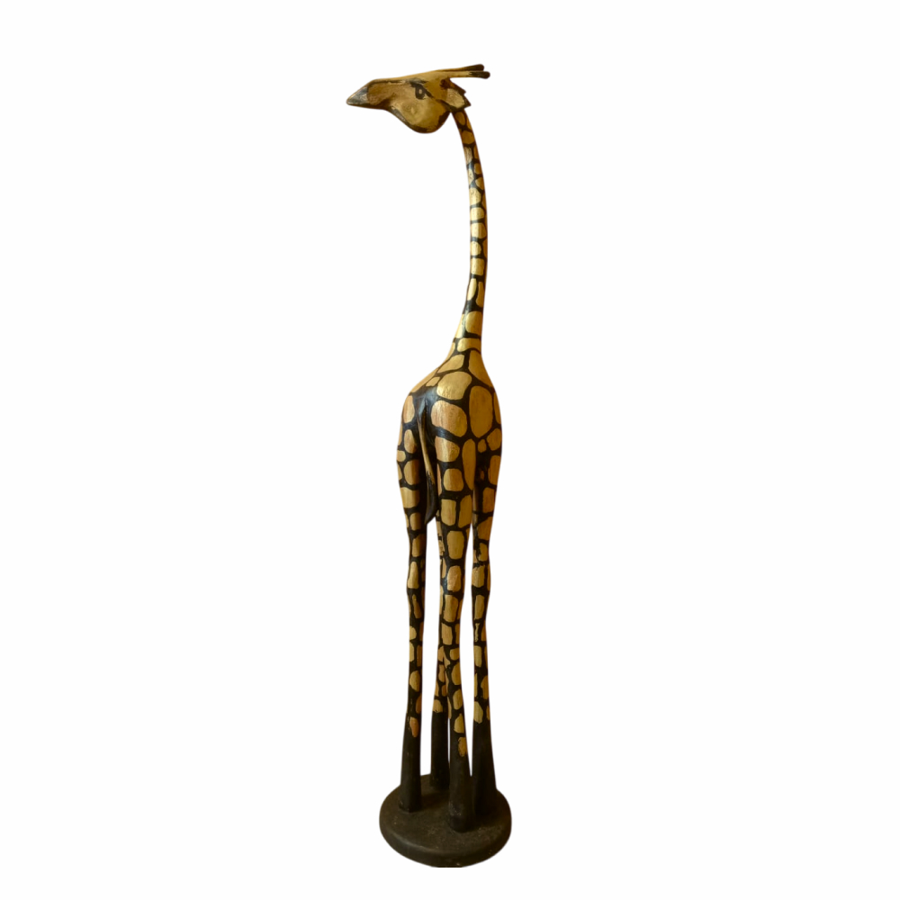Изящная фигура жирафа высотой 1,5 метра, вырезанная вручную из натурального дерева. Контрастное черно-золотое покрытие мягко подчеркивает природную грацию животного и фактуру материала. Эта скульптура станет выразительным акцентом в вашем интерьере, добавляя ему тепла и индивидуальности.