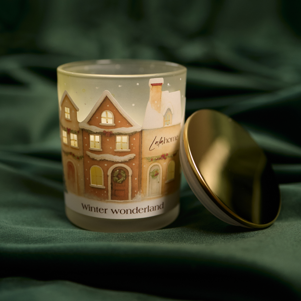 Аромасвеча WINTER WONDERLAND с изображением заснеженного зимнего городка. При горении окна в домиках подсвечиваются и создают волшебную атмосферу Внутри 100% натуральный соевый воск, хлопковый фитиль и премиальные американские аромамасла с сертификатами безопасности IFRA (Международная парфюмерная ассоциация). Без фталатов, при горении не выделяют вредных веществ как парафин и не вызывают головной боли