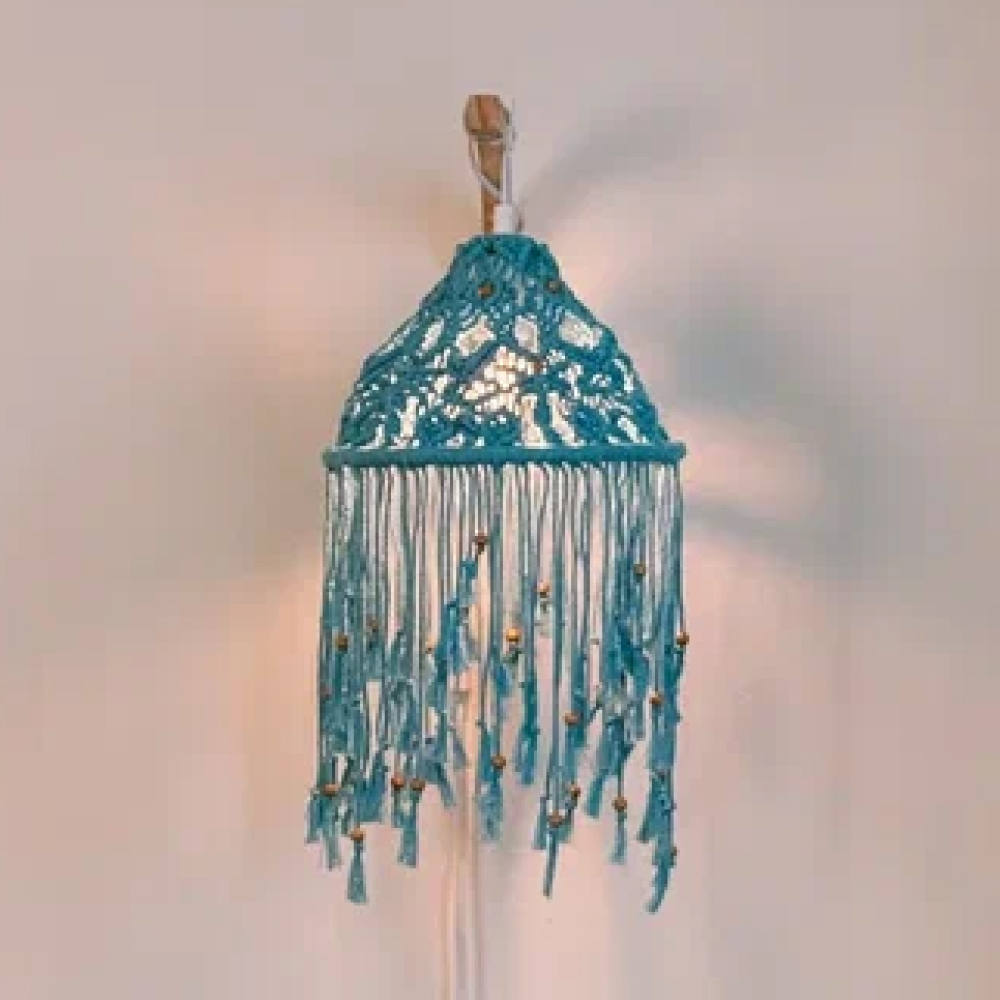 Светильник в технике макраме ручной работы • Cплетён из трёхпрядной хлопковой витой нити (более воздушный рисунок)