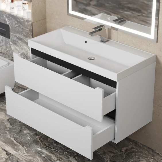 - Тумба под раковину 90 см, Uperwood Tanos, белая/графит матовая