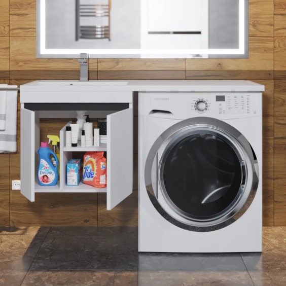 - Тумба с раковиной под стиральную машину подвесная Uperwood Magenta 60/120 см, белая/графит, с дверцами, левая