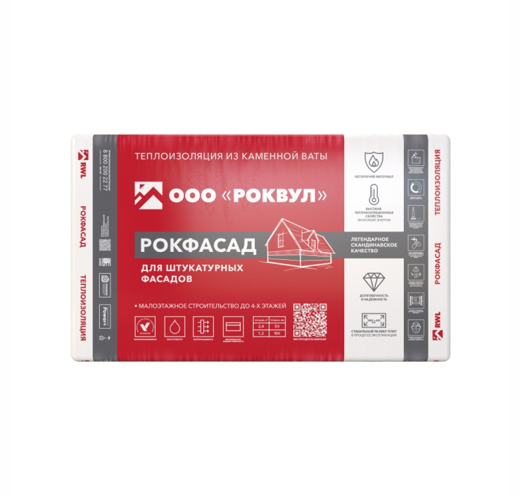 - Утеплитель Rockwool Рокфасад 1000х600х100 мм, 2 шт. уп