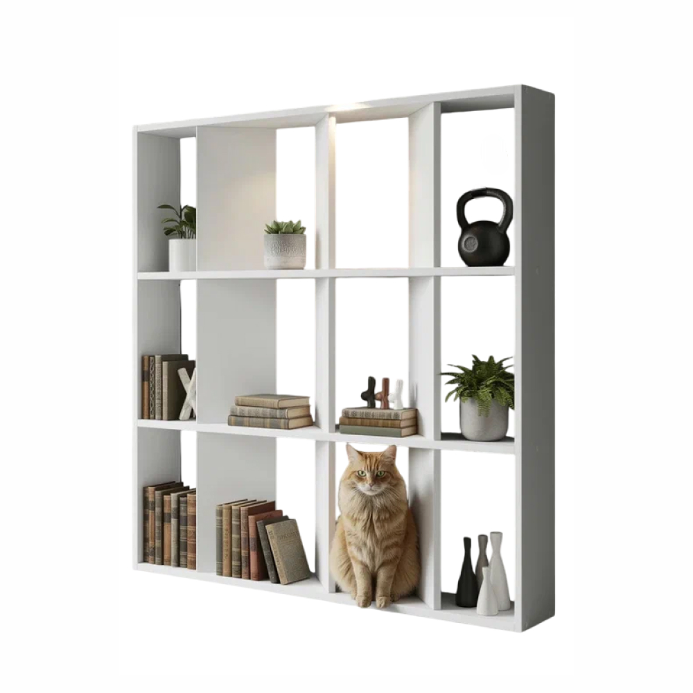 - Удобство хранения и многофункциональность - несмотря на небольшую глубину, стеллаж способен вместить достаточное количество предметов, таких как книги, документы, аксессуары и декоративные элементы. Он уверенно держит крупноформатные альбомы и книги формата А4!- Легкость доступа к содержимому благодаря отсутствию необходимости глубоко проникать внутрь полок.