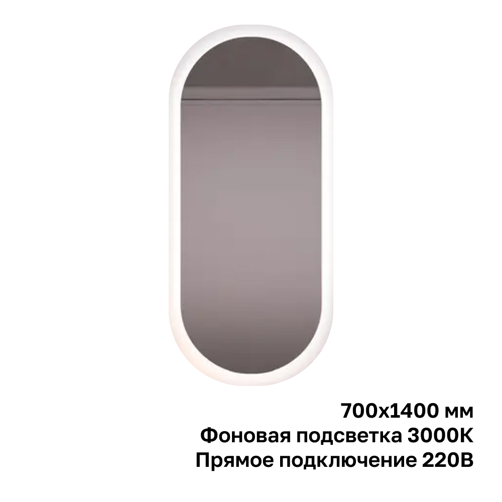 - Зеркало овальное Kapoorso 700х1400 мм с фоновой подсветкой 3000К